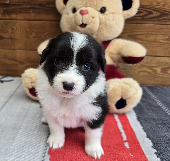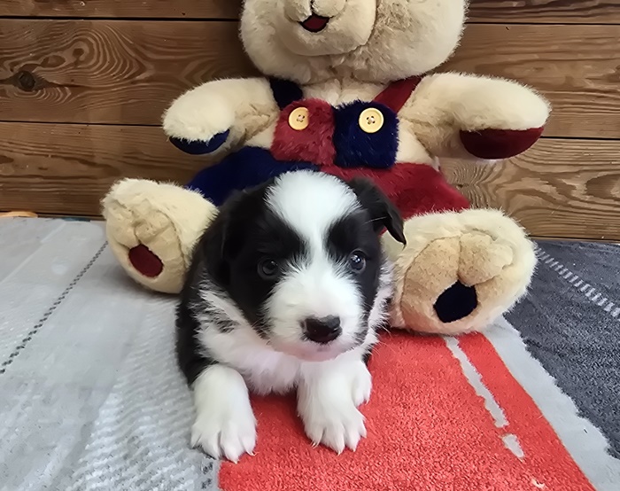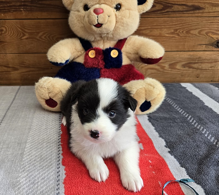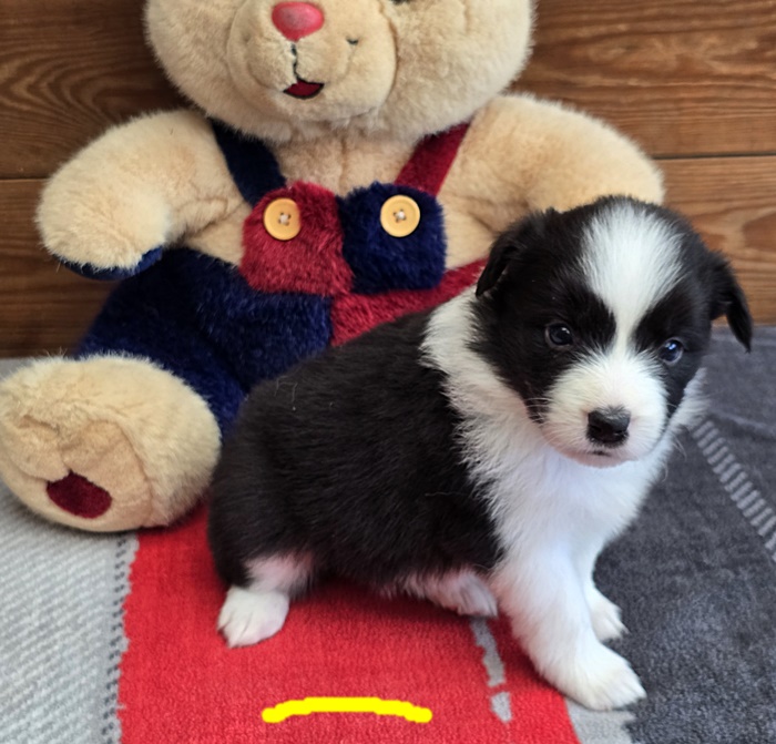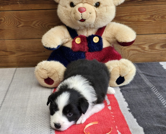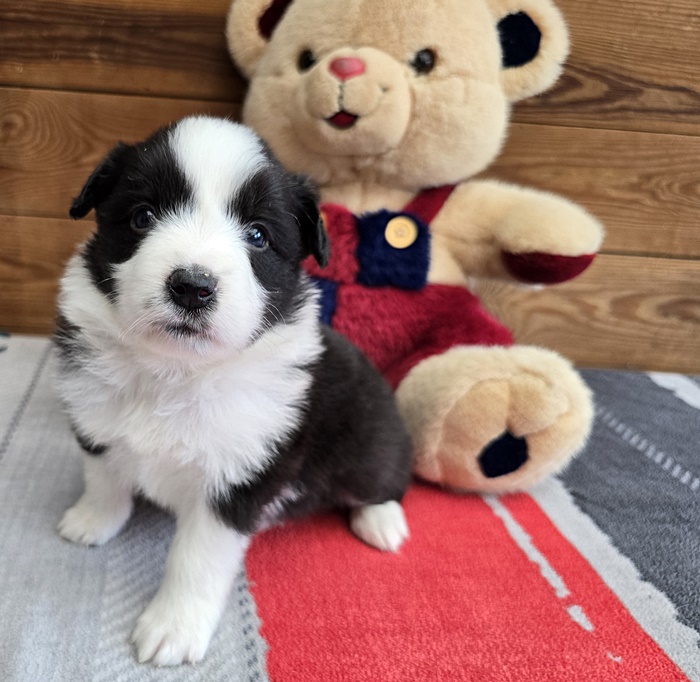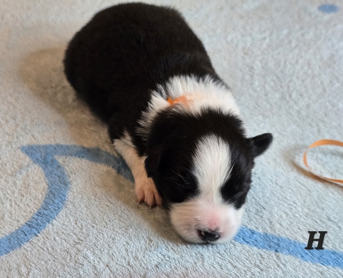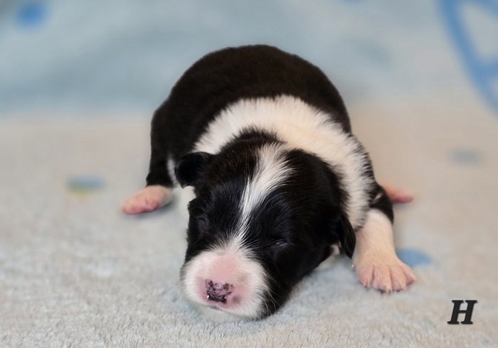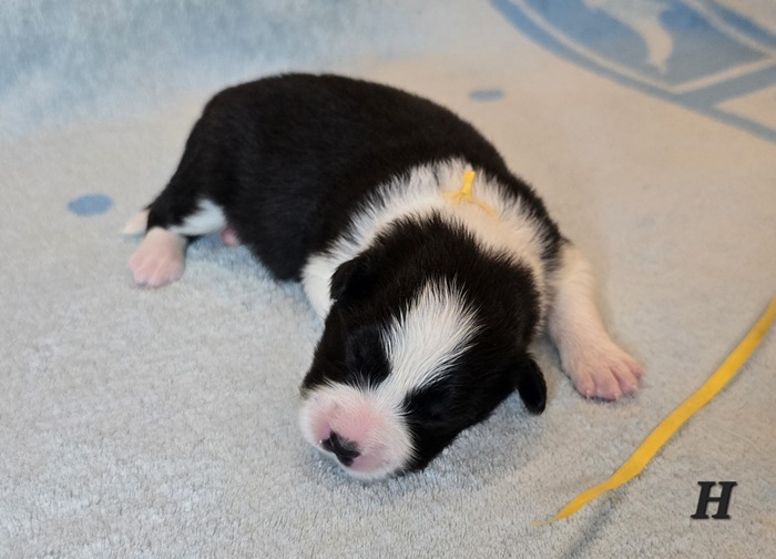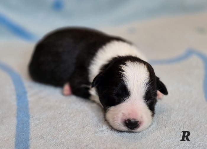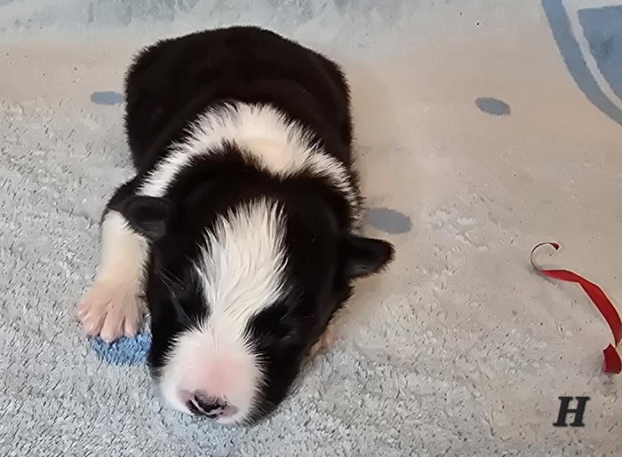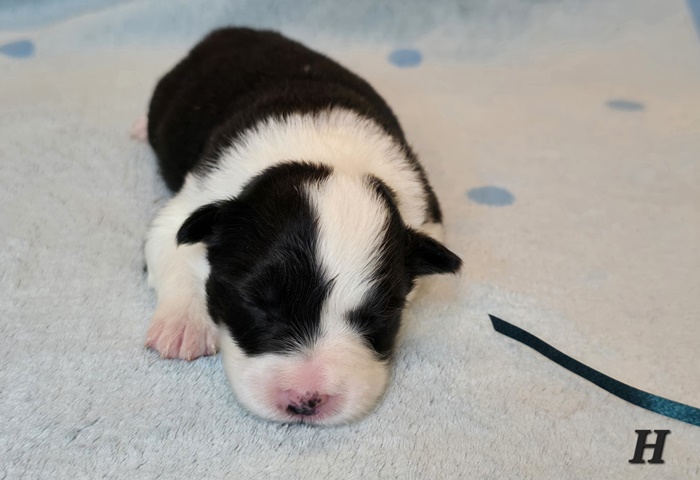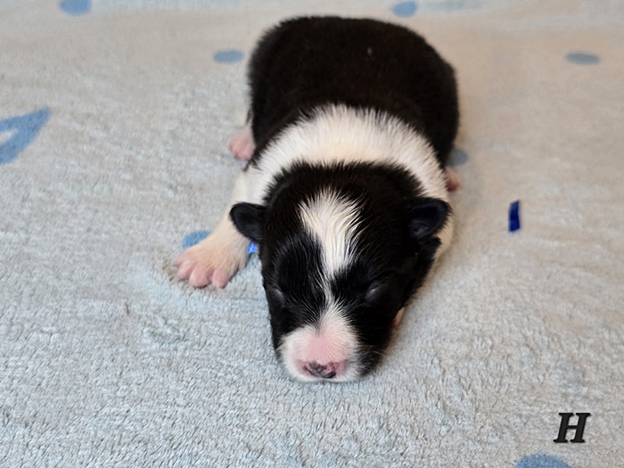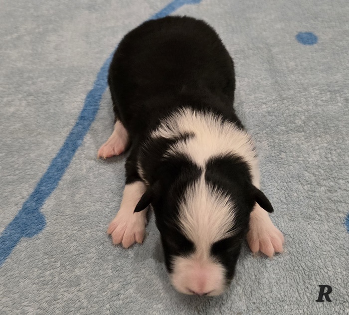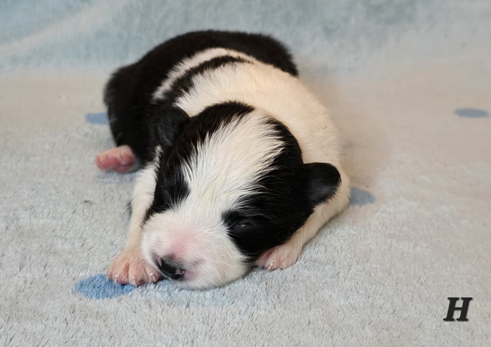 Mein Z - Wurf ist am 06.07.2025 mit 2,7 kräftigen Welpen in black-white geboren.